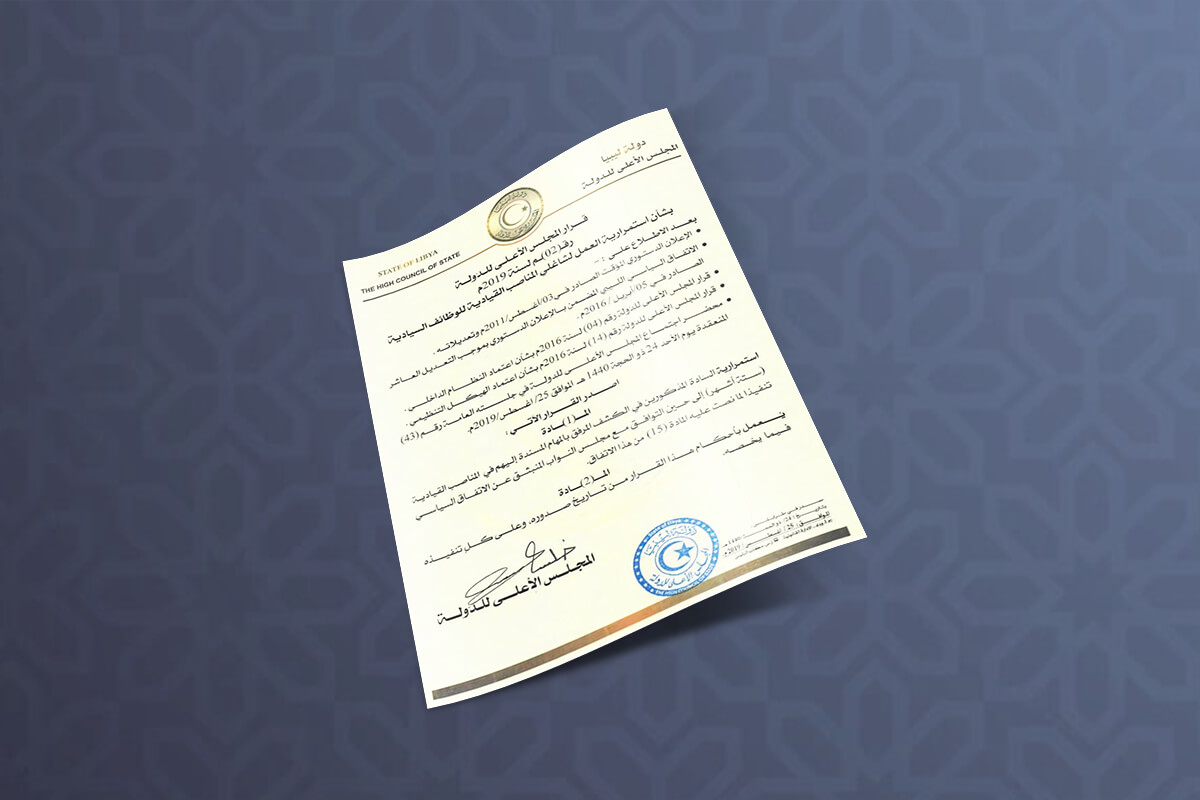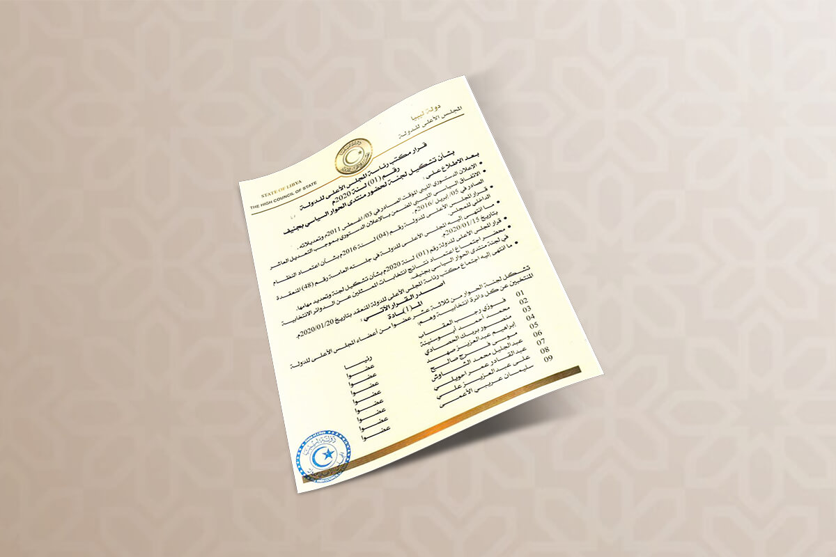 قرار مكتب الرئاسة بالمجلس الأعلى للدولة بشأن تشكيل لجنة لحضور منتدى الحوار السياسي بجنيف21 يناير 2020 قرار المجلس الأعلى للدولة رقم (2) لسنة 201928 أغسطس 2019